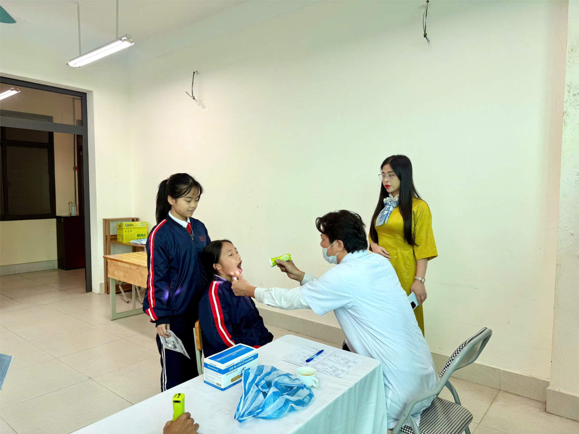 Buổi khám sức khỏe có sự tham dự và chỉ đạo trực tiếp của thầy Hiệu trưởng và cô Hiệu phó nhà trường, cùng đội ngũ cán bộ y tế, giáo viên và nhân viên hỗ trợ. Sự hiện diện của Ban Giám hiệu đã thể hiện tinh thần trách nhiệm, sự sát sao trong công tác chăm sóc học sinh.
