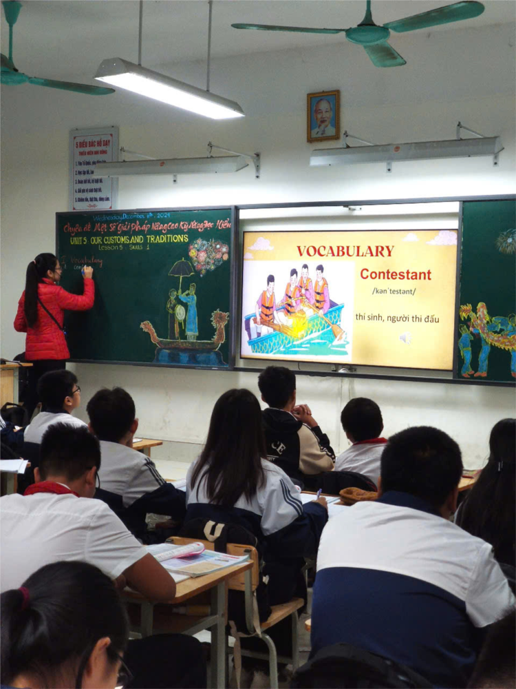 Ngày 11/12/2024, cô giáo Nguyễn Thị Huệ - giáo viên Trường THCS Vĩnh Quỳnh đã có một tiết học chuyên đề đầy sáng tạo với chủ đề "Giải pháp nâng cao kỹ năng đọc hiểu trong môn Tiếng Anh lớp 8, Unit 5: Customs and Traditions, Lesson 5: Skills 1". Tiết học không chỉ tập trung phát triển kỹ năng đọc hiểu mà còn giúp học sinh tìm hiểu sâu hơn về các lễ hội truyền thống của Việt Nam.