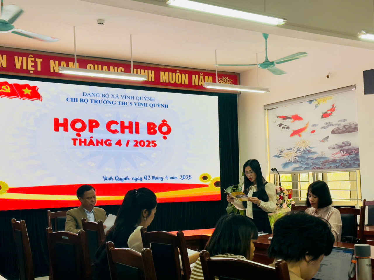 Vào chiều 16h30 ngày 03 tháng 04 năm 2025, Chi bộ Trường THCS Vĩnh Quỳnh đã tổ chức buổi sinh hoạt định kỳ nhằm đánh giá kết quả công tác trong thời gian qua và đề ra phương hướng nhiệm vụ cho thời gian tới. Buổi sinh hoạt diễn ra trong không khí nghiêm túc, đầy tinh thần trách nhiệm và đoàn kết, thu hút sự tham gia đông đảo của các đồng chí trong Chi bộ.