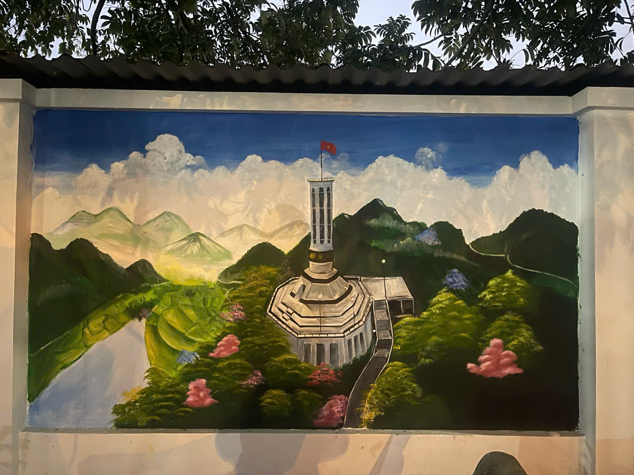 Với tinh thần tự hào dân tộc và lòng yêu quê hương, đội thi của nhà trường đã lựa chọn hình ảnh Cột cờ Lũng Cú – Hà Giang, biểu tượng thiêng liêng nơi địa đầu Tổ quốc, để thể hiện trong bức bích họa của mình. Dưới bàn tay sáng tạo của các em học sinh cùng sự hướng dẫn tận tình của thầy cô, bức tranh không chỉ nổi bật về bố cục hài hòa, màu sắc tươi sáng mà còn toát lên tinh thần yêu nước và ý thức bảo vệ chủ quyền thiêng liêng của dân tộc Việt Nam.