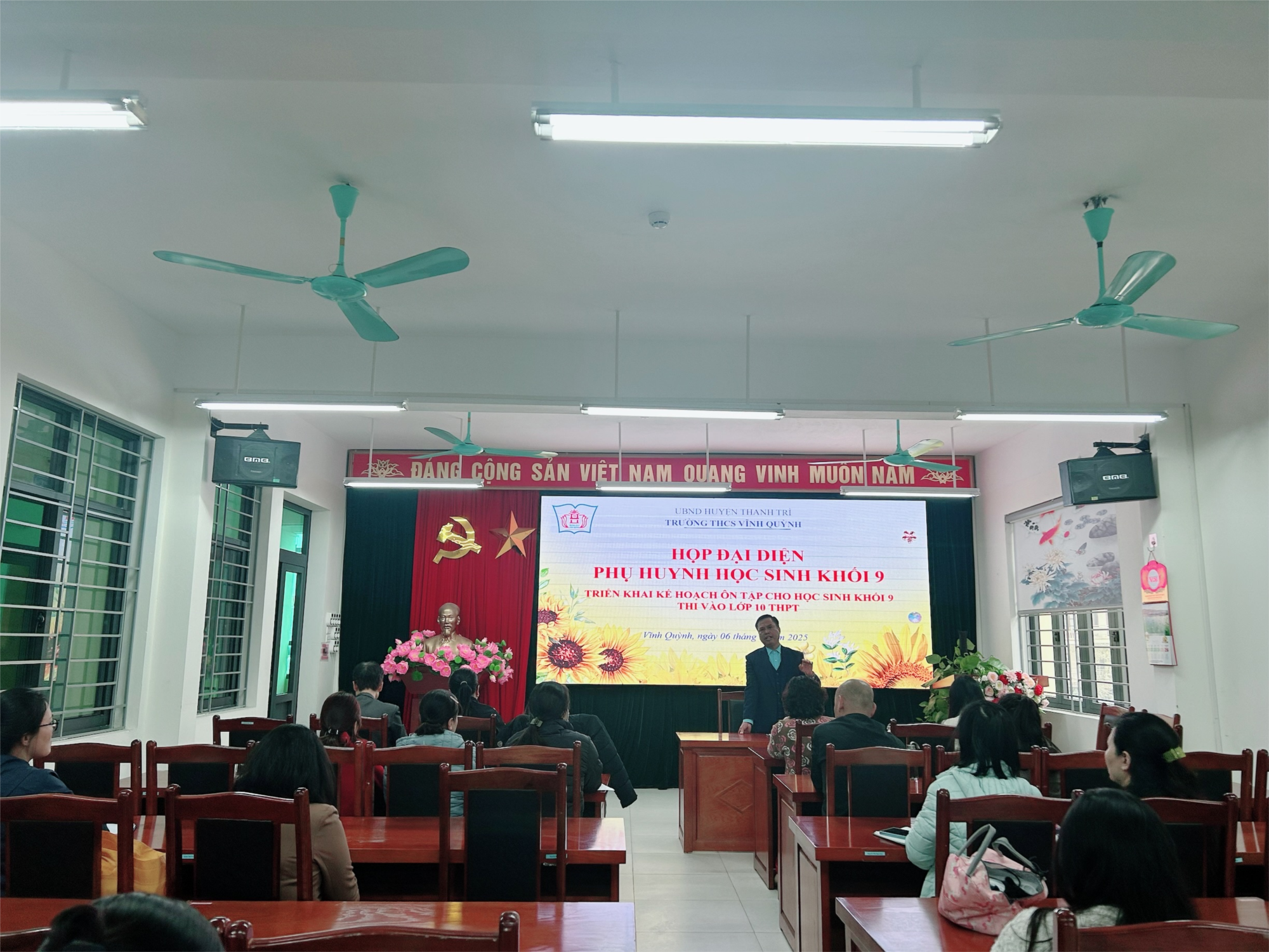 Chiều ngày 6/3/2025, Trường THCS Vĩnh Quỳnh đã tổ chức buổi họp Cha mẹ học sinh khối 9 nhằm triển khai kế hoạch ôn tập và chuẩn bị cho kỳ xét tốt nghiệp THCS cũng như kỳ thi tuyển sinh vào lớp 10 THPT. Buổi họp có sự tham gia của Ban Giám hiệu nhà trường, các giáo viên chủ nhiệm 9, và toàn thể cha mẹ học sinh khối 9.Với mục đích thông báo, triển khai kế hoạch ôn tập cho học sinh khối 9 để chuẩn bị cho kỳ xét tốt nghiệp THCS và kỳ thi vào lớp 10, thực hiện đúng theo thông tư 29/2024/TT-BGDĐT; trao đổi với phụ huynh về tình hình học tập của học sinh, tạo sự phối hợp chặt chẽ giữa gia đình và nhà trường để hỗ trợ học sinh trong giai đoạn ôn tập.