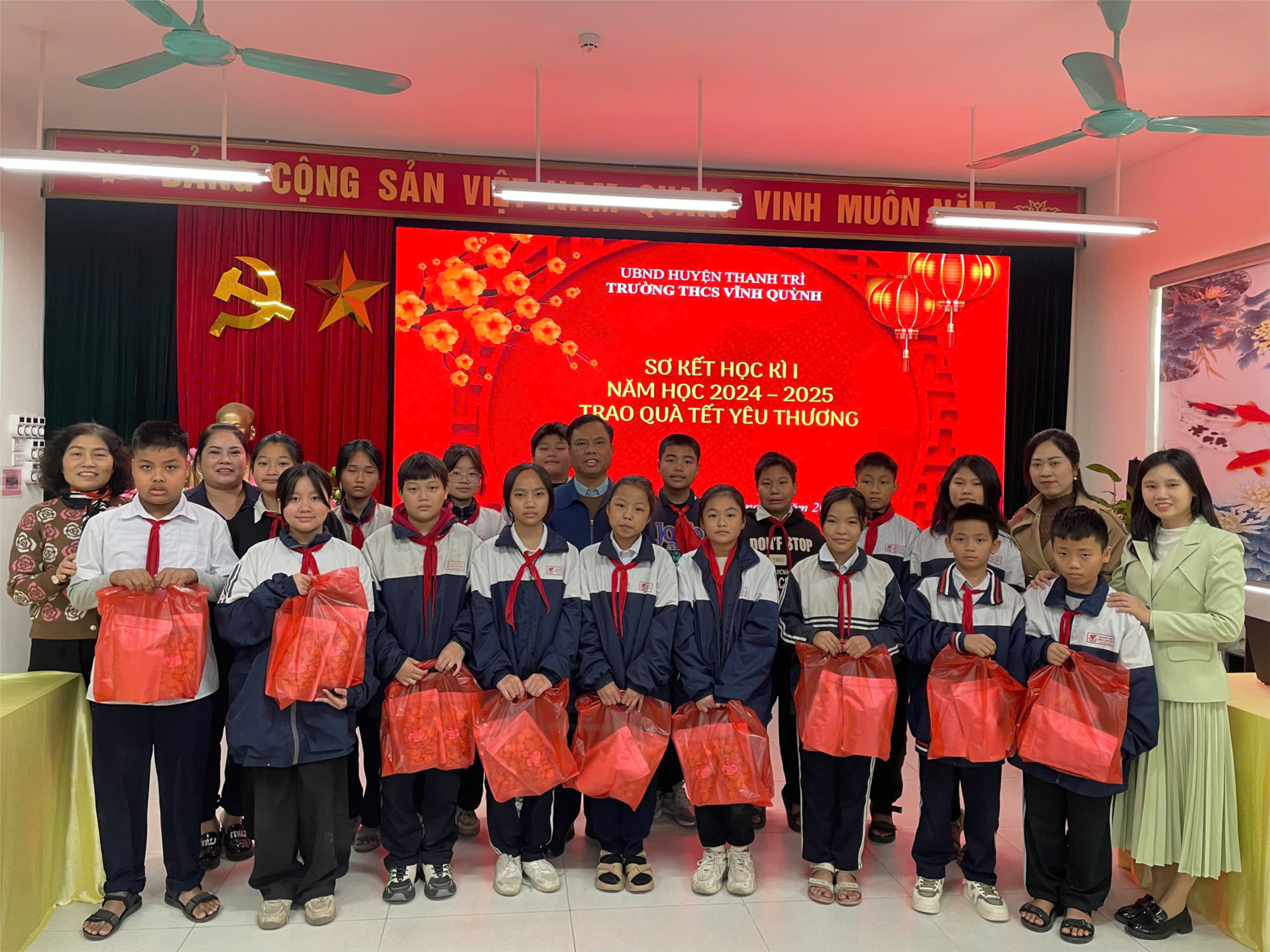 Nhân dịp Tết nguyên đán Ất Tỵ 2025, Trường THCS Vĩnh Quỳnh phối kết hợp với Ban phụ huynh nhà trường trao tặng 86 suất quà cho các em học sinh có hoàn cảnh khó khăn. Những món quả nhỏ bé nhưng lại chứa đựng rất nhiều tình cảm của các bác phụ huynh và thầy cô nhà trường.