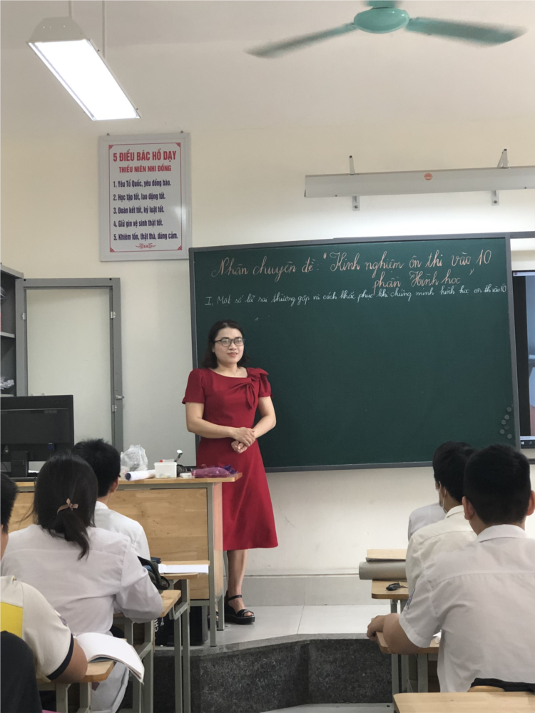 Kỳ thi tuyển sinh vào 10 THPT đang ngày một gần, nhằm củng cố, trang bị những kiến thức cần thiết để các em học sinh được trau dồi thêm kỹ năng để đạt được số điểm cao nhất trong phần Hình của đề thi, sáng ngày 02/6/2023 cô giáo Nguyễn Thị Hồng đã thực hiện thành công tiết chuyên đề " Kinh nghiệm ôn thi vào 10 – Phần Hình học"