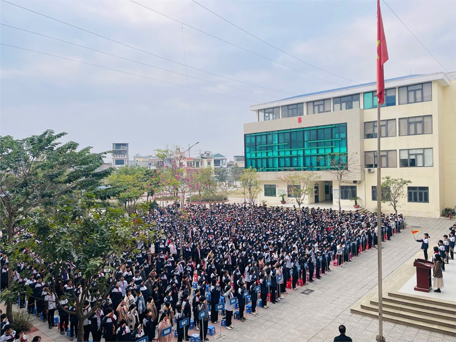 Sinh hoạt dưới cờ chào tuần mới hướng về ngày 22/12 của thầy và trò trường THCS Vĩnh Quỳnh