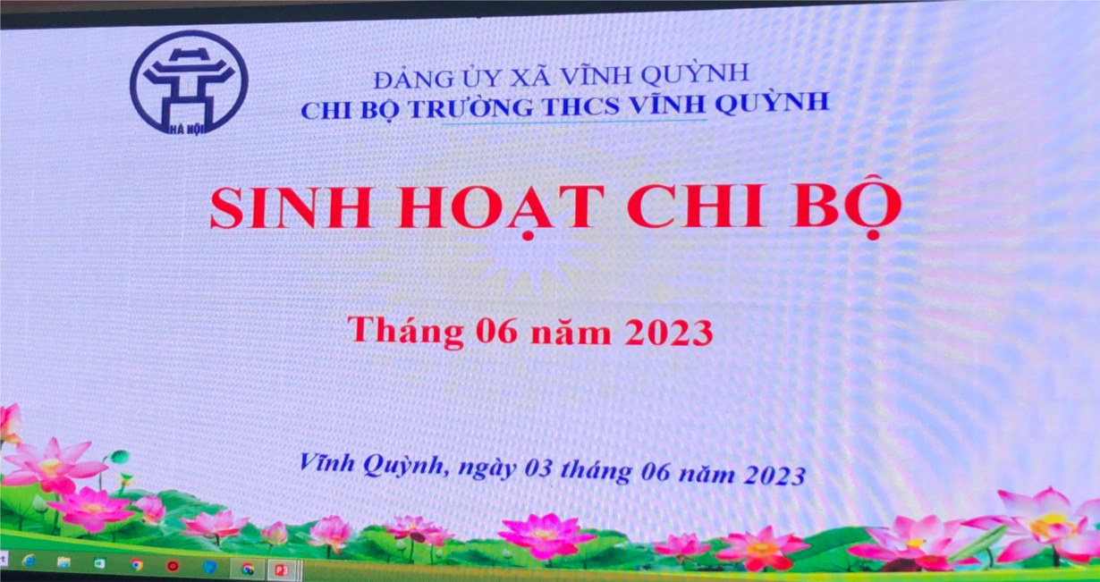 Sáng ngày 3/6/2023, chi bộ trường THCS Vĩnh Quỳnh tiến hành họp chi bộ thường kì tháng 6. Tham dự cuộc họp có đồng chí Lê Thịnh - Bí thư chi bộ, Hiệu trưởng nhà trường - chủ trì cuộc họp, các đồng chí trong cấp ủy Chi bộ và toàn thể các đồng chí đảng viên của Chi bộ. Đồng chí Nguyễn Thị Thảo là thư kí của cuộc họp.