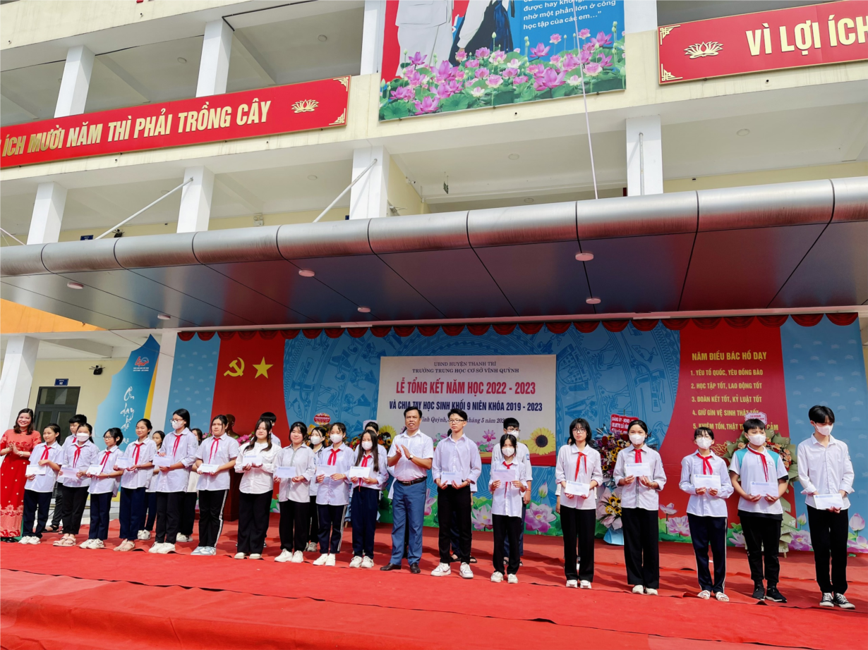 Nhớ lại những ngày đầu năm học, THCS Vĩnh Quỳnh chính thức được nhận và bàn giao cơ sở mới. Bao khó khăn, bao thách thức, bao hy vọng của nhân dân địa phương và các cấp ngành đặt niềm tin vào nhà trường. Cùng nhau nỗ lực, đoàn kết và cố gắng, THCS Vĩnh Quỳnh đã tạo nên những dấu son, những khởi sắc mới. Để nhìn lại chặng đường đã qua, sáng ngày 27/5/2023, trường THCS Vĩnh Quỳnh long trọng tổ chức Lễ Tổng kết năm học 2022-2023 và chia tay học sinh khối 9 niên khoá 2019-2023.