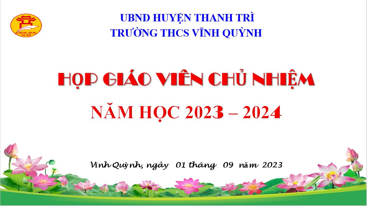 Thực hiện kế hoạch hoạt động của Nhà trường, 9h sáng ngày 1/9/2023, trường THCS Vĩnh Quỳnh đã tổ chức cuộc họp giáo viên chủ nhiệm năm học 2023 – 2024. Mục đích của cuộc họp là triển khai các công việc chuẩn bị cho Lễ khai giảng năm học mới 2023 – 2024 và họp CMHS đầu năm học mới.