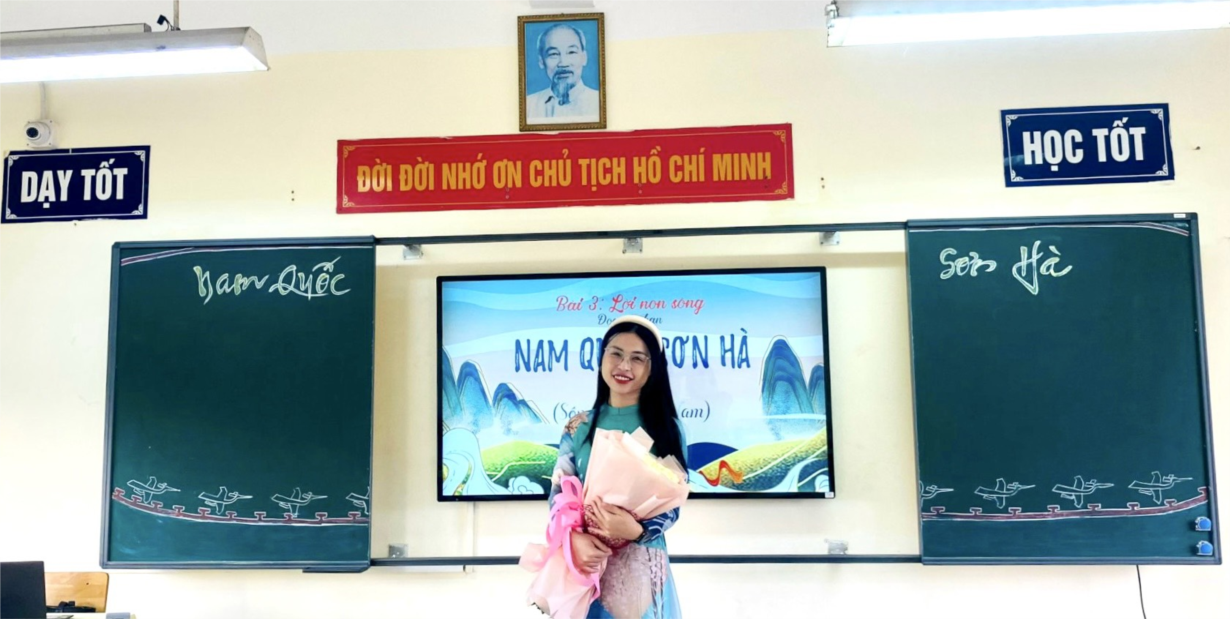 Cô giáo Vũ Minh Phương là một cô giáo trẻ luôn mang trong mình bầu nhiệt huyết, sự tự tin và tình yêu đối với học trò. Đến với hội thi giáo viên giỏi Thành phố năm nay, cô giáo đã mang đến một bài thơ trung đại “Nam quốc sơn hà”, bài thơ được coi là Bản Tuyên ngôn độc lập đầu tiên của nước Việt Nam. Với tài năng, sự khéo léo vận dụng linh hoạt các phương pháp, kĩ thuật dạy học, trong đó Công nghệ thông tin là một thế mạnh, các em học sinh đã được tham gia một tiết học vô cùng ý nghĩa với rất nhiều những cung bậc cảm xúc khác nhau.