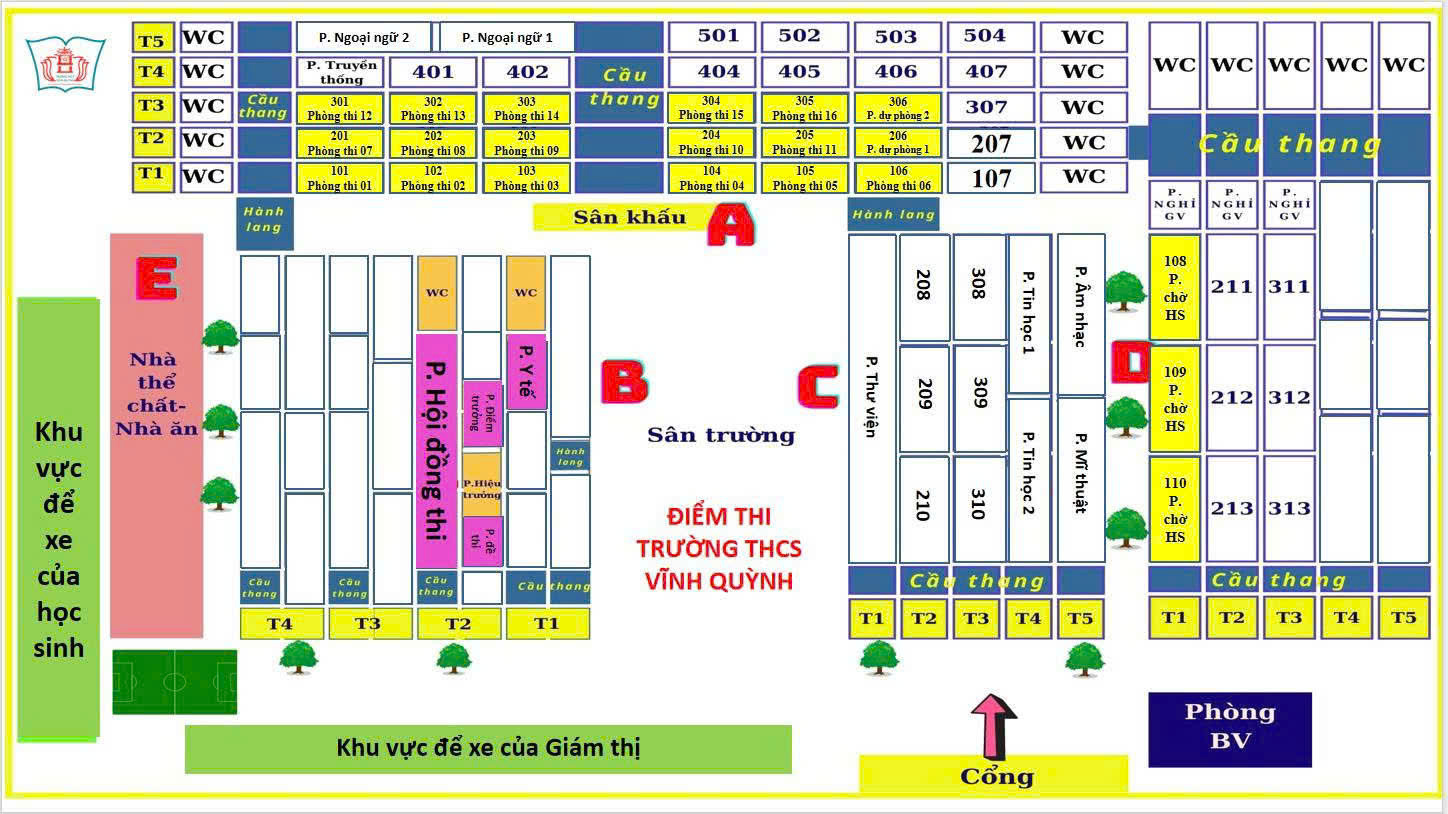 Sơ đồ phòng thi tại điểm thi trường THCS Vĩnh Quỳnh