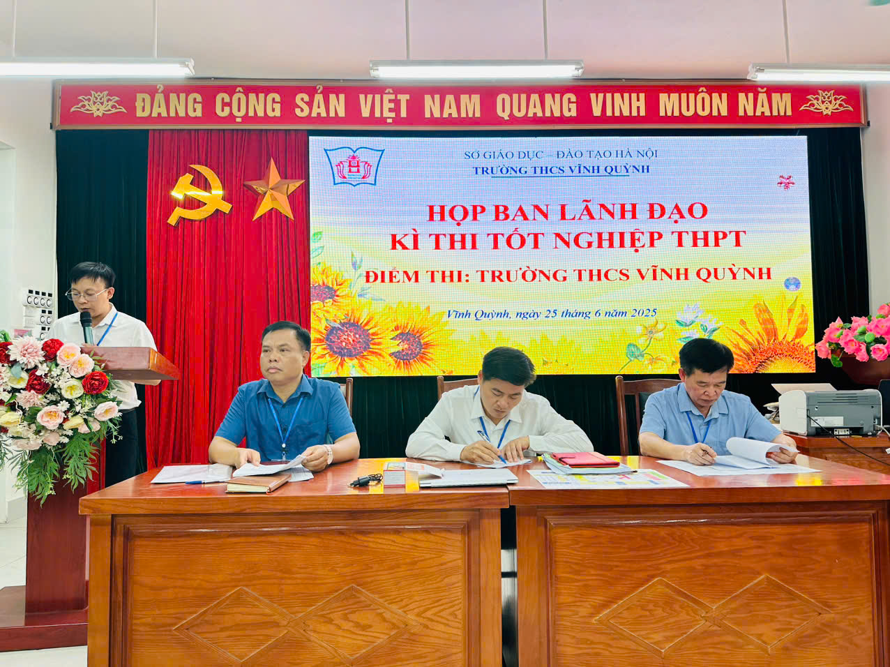 Trong các ngày 25 đến 27 tháng 6 năm 2025, kỳ thi tốt nghiệp trung học phổ thông đã chính thức diễn ra trên cả nước. Năm nay, Trường THCS Vĩnh Quỳnh vinh dự được Sở Giáo dục và Đào tạo Hà Nội lựa chọn là một trong các điểm thi chính thức của thành phố Hà Nội, phục vụ cho thí sinh tham dự kỳ thi quan trọng này.