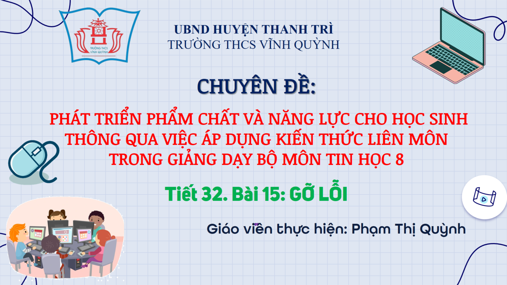 Chúc mừng cô giáo Phạm Thị Quỳnh đã thành công trong việc thực hiện chuyên đề cấp Huyện môn Tin học 8.