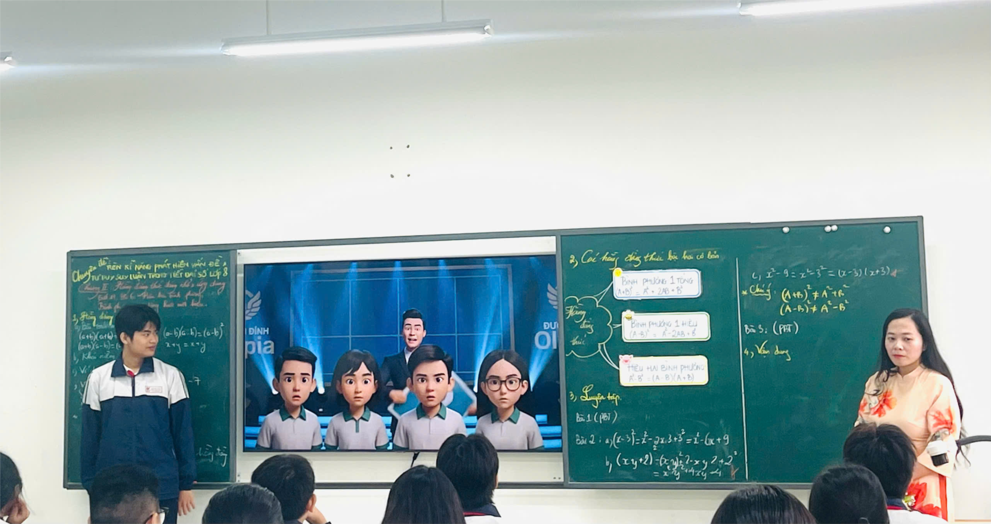 Thực hiện đổi mới phương pháp dạy học theo hướng phát triển năng lực học sinh, sáng thứ 4 ngày 12 tháng 11 năm 2025, tổ Toán – Tin Trường THCS Vĩnh Quỳnh đã tổ chức tiết dạy chuyên đề môn Toán 8: “Rèn kĩ năng phát hiện vấn đề, tư duy suy luận trong tiết đại số lớp 8 - Tiết 17 Bài 6: Hiệu hai bình phương. Bình phương của một tổng hay một hiệu”. Tiết học được thực hiện bởi cô giáo Đặng Thu Trang với sự tham dự của thầy giáo Lê Thịnh - Bí thư Chi bộ - Hiệu trưởng nhà trường, cô giáo Vũ Minh Phương – Phó Bí thư Chi bộ - Phó Hiệu trưởng nhà trường cùng các thầy cô giáo trong tổ chuyên môn.