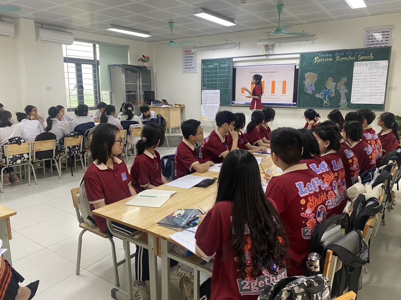 Thực hiện kế hoạch năm học 2023 – 2024, sáng ngày 9/4/2024, nhóm Tiếng Anh 9 – Tổ Năng khiếu trường THCS Vĩnh Quỳnh đã tổ chức nhân chuyên đề cấp huyện kết hợp chuyên đề cấp trường - Chuyên đề ôn thi vào 10: “Khơi gợi sự hứng thú và phát huy tính tích cực, chủ động của học sinh trong giờ ôn tập câu gián tiếp” do cô giáo Nguyễn Minh Trang thực hiện tại lớp 9A1.