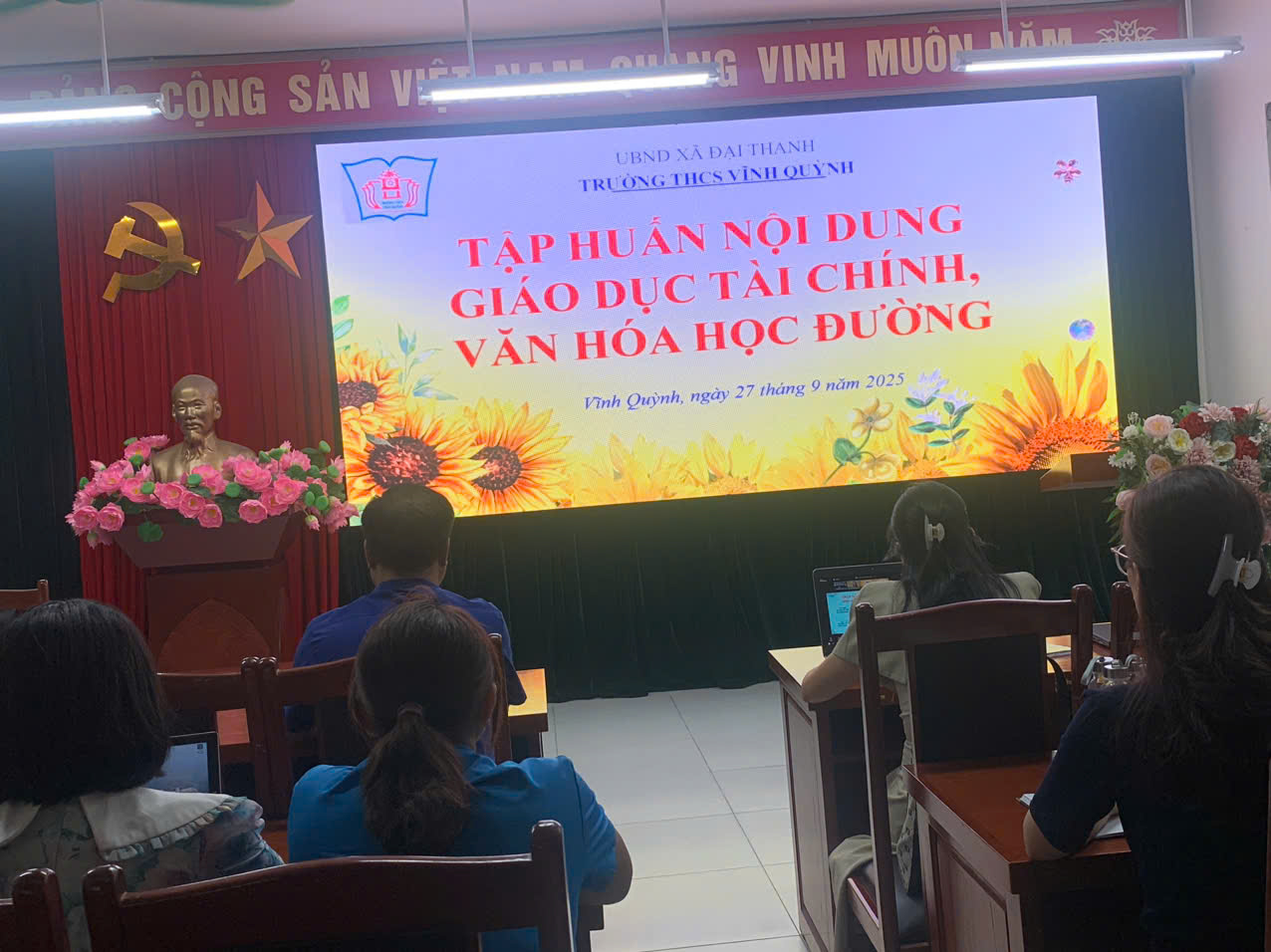 Với tinh thần đó, chiều ngày 27 tháng 9 năm 2025, toàn thể giáo viên trường THCS Vĩnh Quỳnh đã tích cực tham gia buổi tập huấn chuyên đề buổi 2 với hai nội dung thiết thực: Giáo dục tài chính cho học sinh - Xây dựng và lan tỏa văn hóa học đường tích cực.