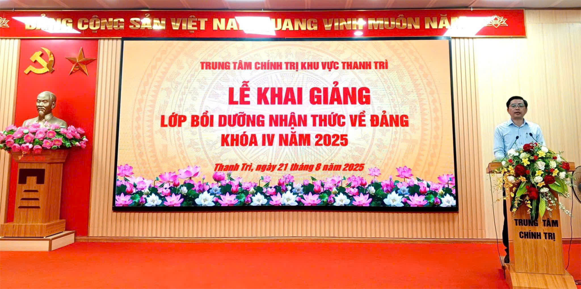 Thực hiện Kế hoạch số 263-KH/HU ngày 03/01/2025 của Huyện ủy Thanh Trì (cũ) về đào tạo, bồi dưỡng cán bộ, công chức, viên chức và các đối tượng ưu tú, từ ngày 21 đến ngày 27/8/2025, Trung tâm Chính trị khu vực Thanh Trì đã tổ chức Lớp bồi dưỡng nhận thức về Đảng khóa IV năm 2025.