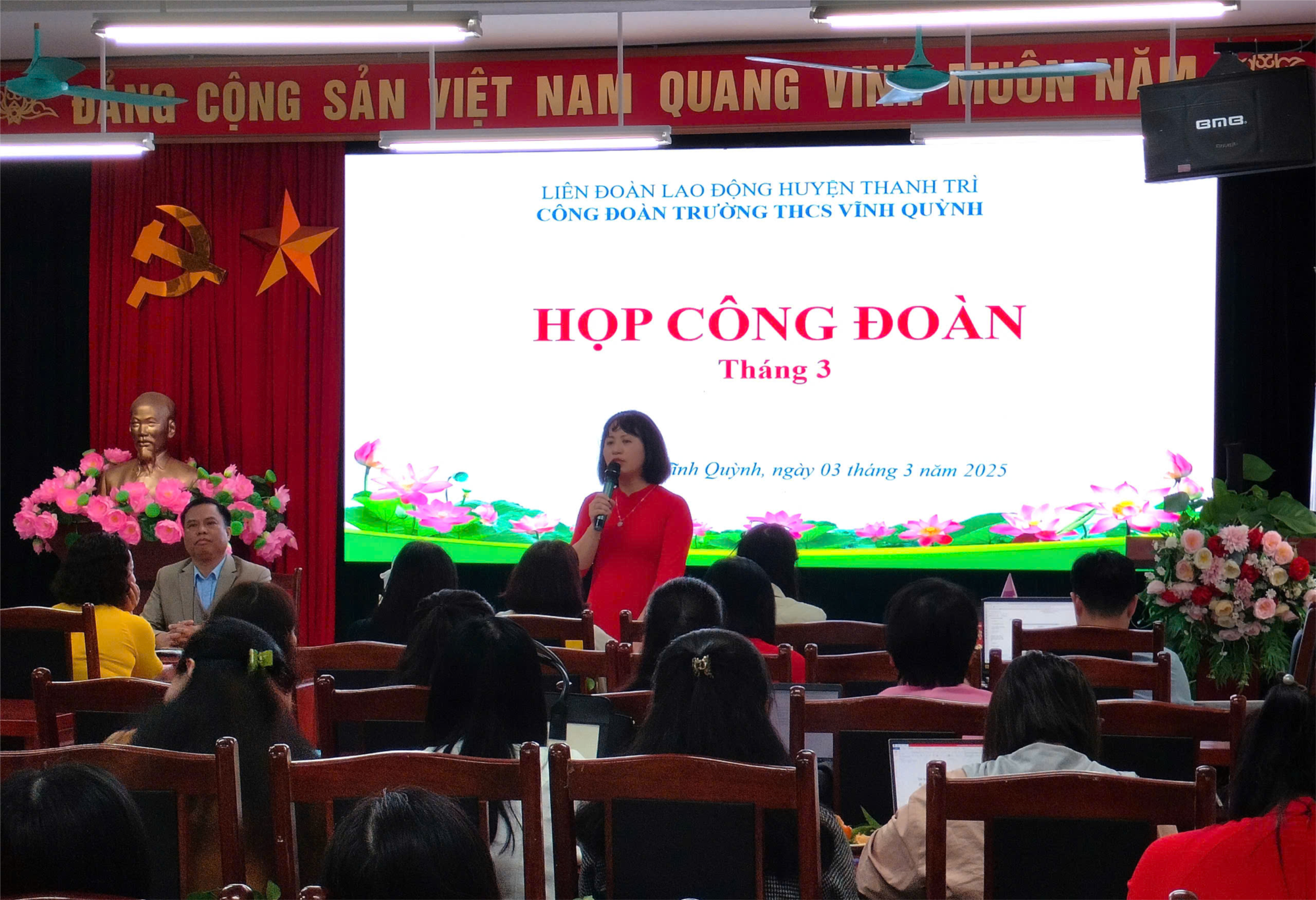 Chiều ngày 3/3/2025, Công đoàn trường THCS Vĩnh Quỳnh đã tổ chức cuộc họp Công đoàn tháng 3/2025 nhằm triển khai các hoạt động trọng tâm trong tháng 3. Cuộc họp diễn ra ngay sau phiên họp Hội đồng sư phạm, dưới sự chủ trì của đồng chí Lê Đỗ Minh Hà – Chủ tịch Công đoàn nhà trường, với sự tham gia của đông đủ cán bộ, giáo viên, nhân viên.