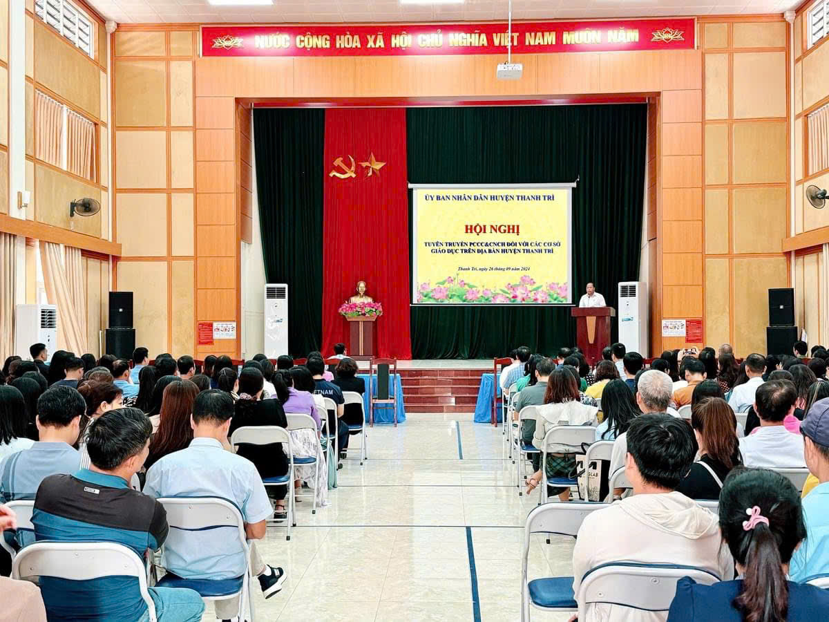 Sáng ngày 26/9/2024, trường THCS Vĩnh Quỳnh đã tham dự Hội nghị tuyên truyền, huấn luyện nghiệp vụ phòng cháy chữa cháy và cứu nạn cứu hộ năm 2024 do UBND huyện Thanh Trì tổ chức với sự tham gia của trên 300 học viên là Ban Giám hiệu, cán bộ phụ trách công tác PCCC, Đội PCCC tại các cơ sở giáo dục công lập trên địa bàn huyện. Đây là hoạt động được tổ chức định kỳ hàng năm, nhằm nâng cao nhận thức, ý thức và trách nhiệm của mỗi cán bộ, giáo viên, nhân viên, chủ động xử lý các tình huống khi có sự cố cháy nổ xảy ra.