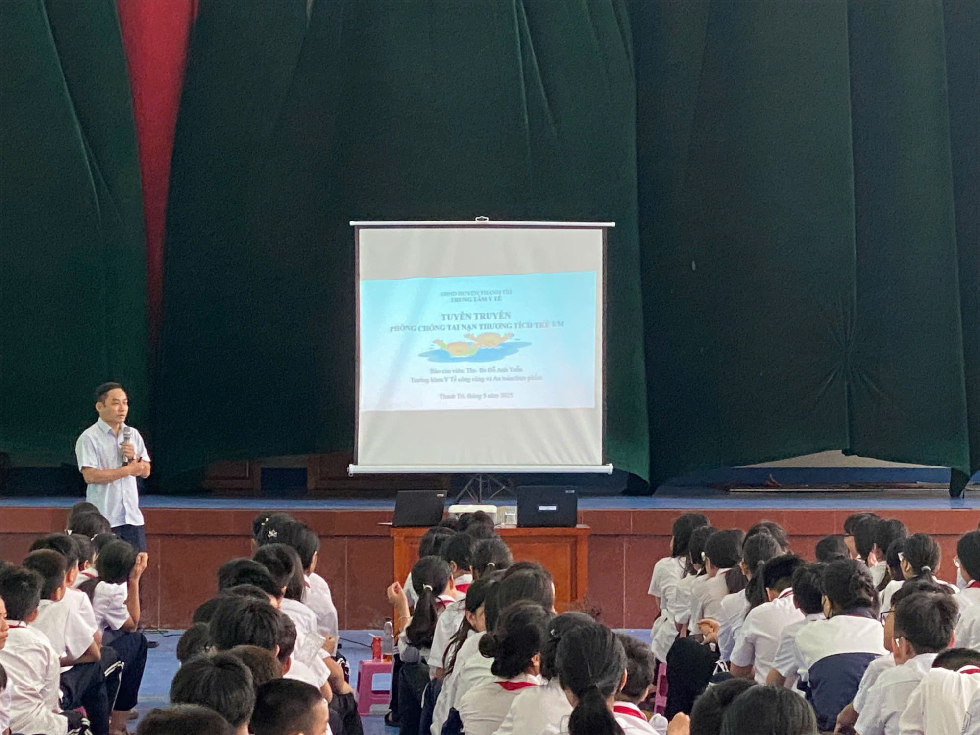 Cô Nguyễn Thị Bích Thuỷ – Phó hiệu trưởng nhà trường có lời cảm ơn tới đoàn xã Vĩnh Quỳnh và bác sĩ trưởng khoa y tế cộng đồng huyện Thanh Trì đã cùng phối hơp với nhà trường tổ chức hội nghị chia sẻ những kiến thức vô cùng bổ ích và thiết thức cho các em học sinh để bảo vệ bản thân. Đồng thời cô cũng nhấn mạnh: “Trẻ em là tương lai của đất nước. Việc giáo dục kỹ năng phòng tránh tai nạn thương tích không chỉ giúp các em an toàn, mà còn hình thành lối sống tích cực và ý thức trách nhiệm với cộng đồng.”