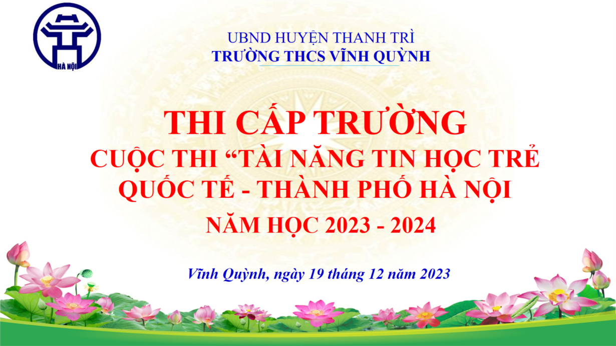 Căn cứ Kế hoạch tổ chức Cuộc thi “Tài năng Tin học trẻ quốc tế - Thành phố Hà Nội” của Trường THCS Vĩnh Quỳnh.