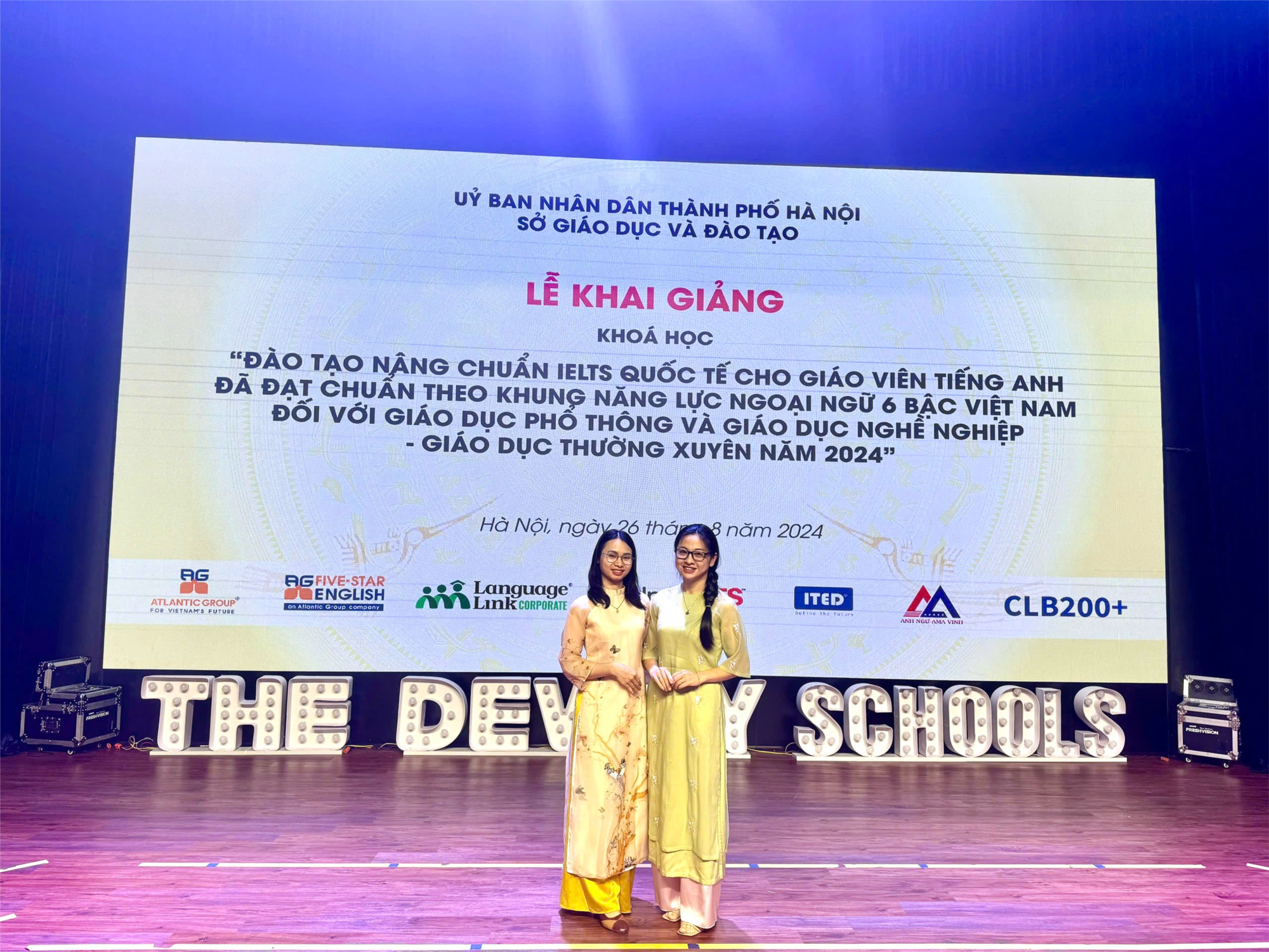 Sáng ngày 26 tháng 8 năm 2024, cô giáo Nguyễn Thị Huệ và cô giáo Nguyễn Thu Thảo - trường THCS Vĩnh Quỳnh vinh dự được đại diện tham dự lễ khai giảng khóa học đào tạo nâng chuẩn IELTS quốc tế cho giáo viên Tiếng Anh, tổ chức tại Trường TH và THCS Dewey School - Hà Nội cùng với các thầy cô giáo Tiếng Anh và BGH khác đại diện cho các trường giáo dục phổ thông trên địa bàn Thành phố Hà Nội. Đây là một sự kiện quan trọng trong năm 2024, đánh dấu bước tiến mới trong việc nâng cao chất lượng giảng dạy môn Tiếng Anh tại các cơ sở giáo dục phổ thông và giáo dục thường xuyên.