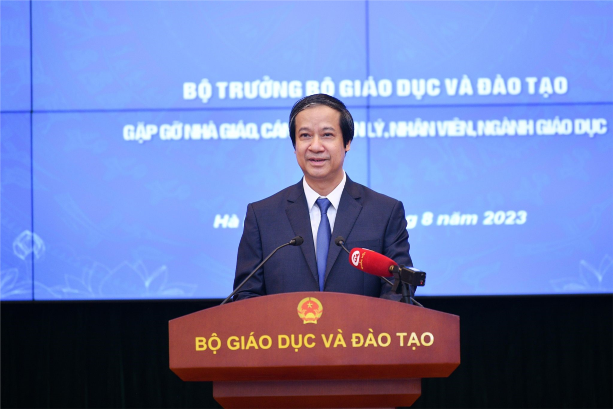 Bộ trưởng Bộ GD&ĐT Nguyễn Kim Sơn phát biểu tại buổi gặp gỡ giáo viên, cán bộ quản lý, nhân viên bậc mầm non, phổ thông, giáo dục thường xuyên.